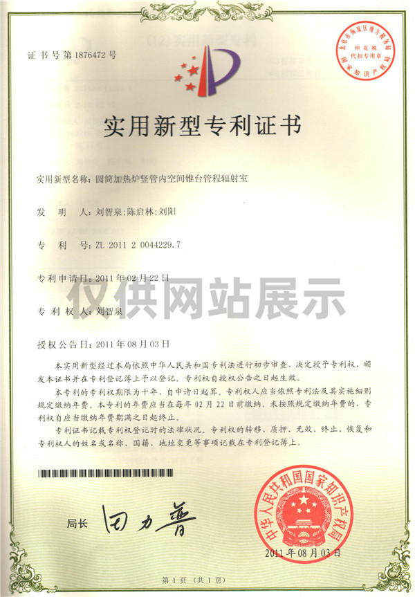圓筒加熱爐豎管內空間錐臺管程輻射室