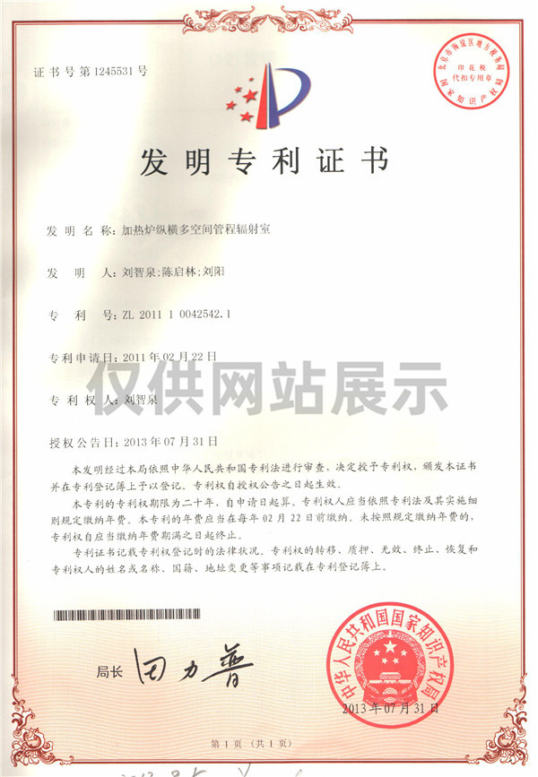 加熱爐豎管內(nèi)空間臺(tái)式管程輻射室